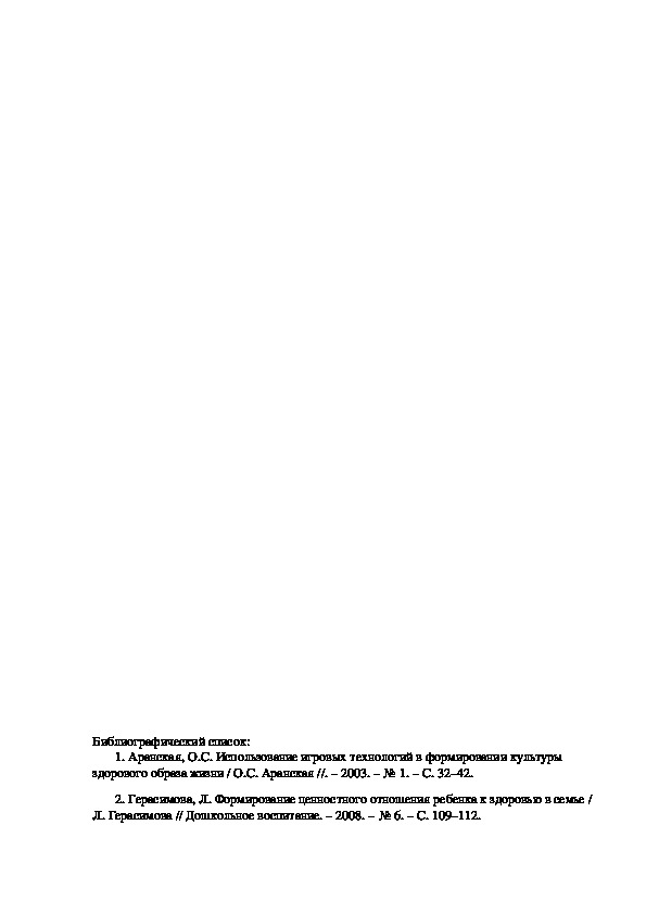 2. Герасимова, Л. Формирование ценностного отношения ребенка к здоровью в семье /