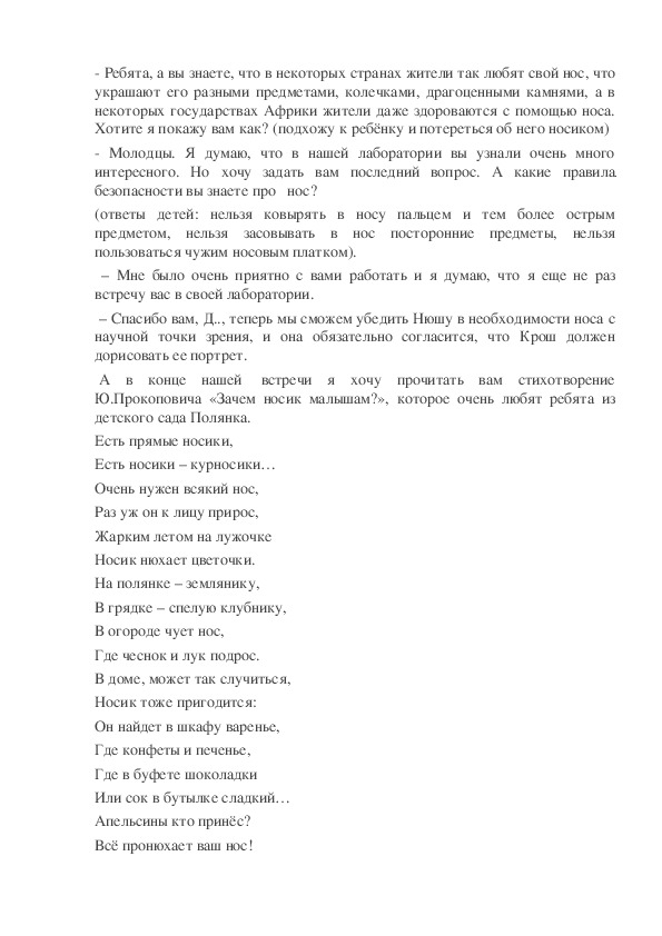 знакомстве с окружающим миром: глаза, уши, нос, рот. Кожа и ее