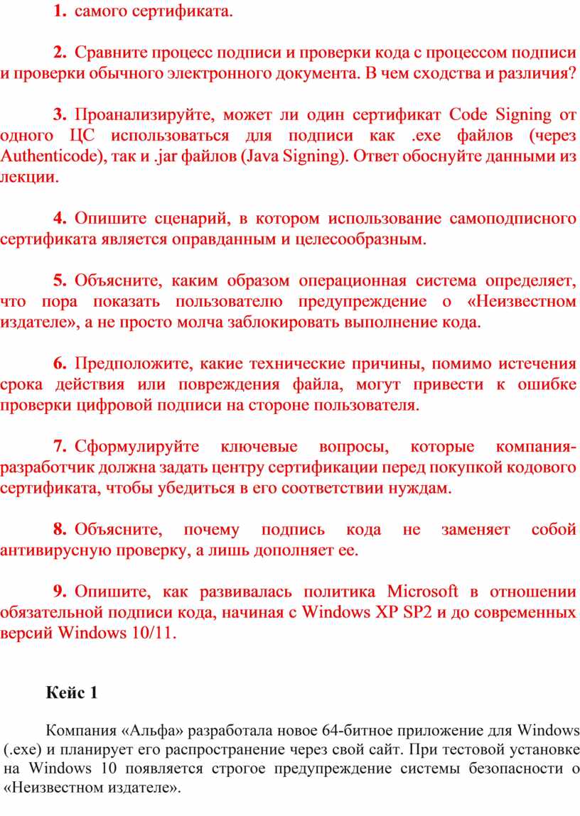 · Вопрос: Выдвините гипотезу, почему легитимное подписанное приложение может быть заблокировано ОС, даже если с подписью все в порядке.