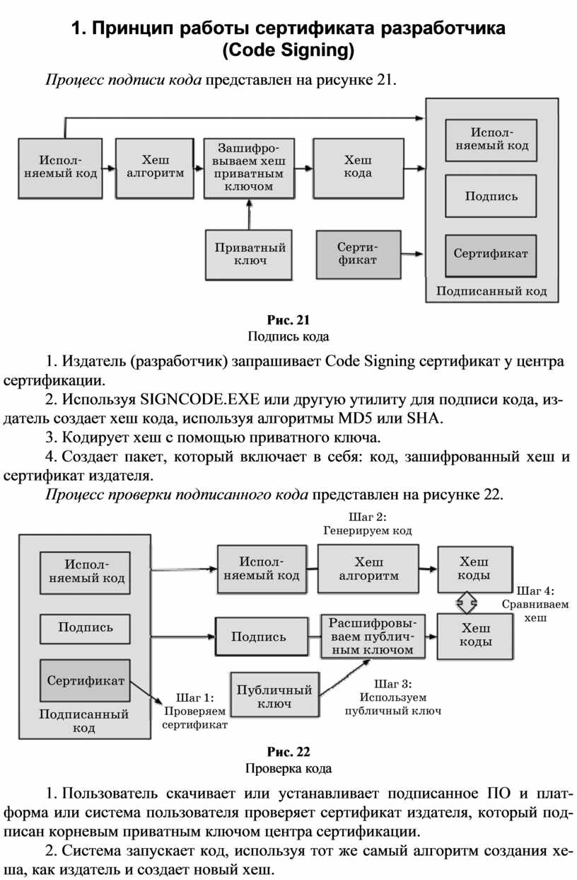 – подлинность источника, подтверждая посредством цифровой подпи- си, что ПО на самом деле выпущено указанной в сертификате компанией или физическим лицом;
