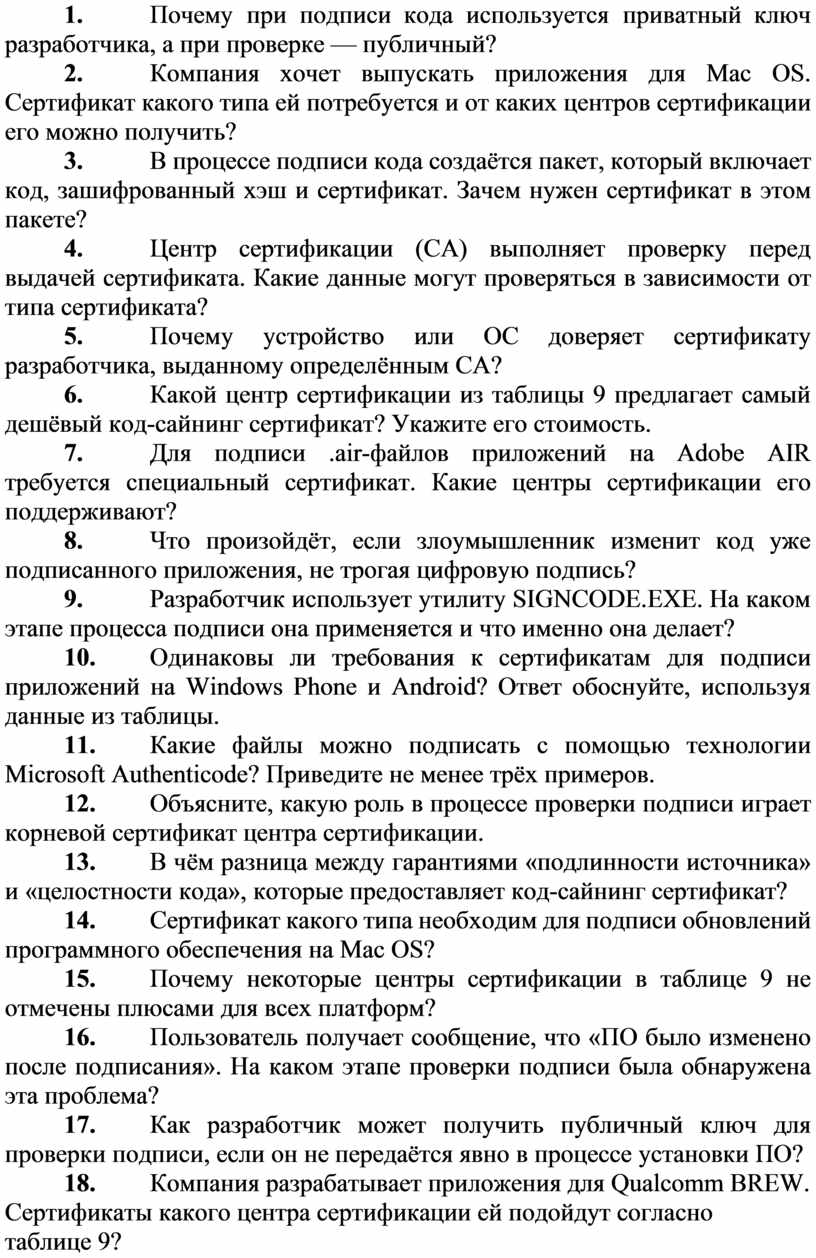 · Вопрос: Проанализируйте таблицу 9. Какой центр сертификации позволяет покрыть все эти нужды одним сертификатом? Если такого нет, какая комбинация ЦС будет наиболее экономически выгодной?