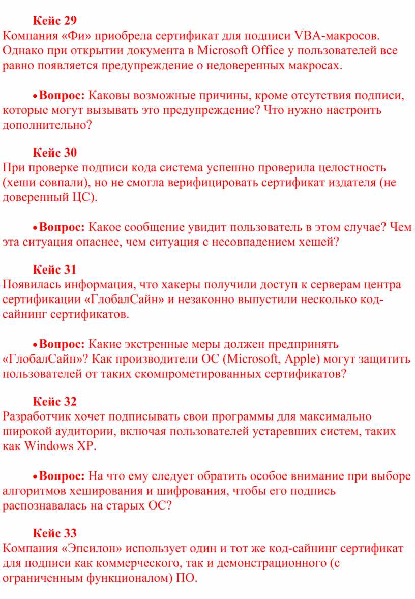 10. Что подписывает сертификат Microsoft Office VBA Signing?