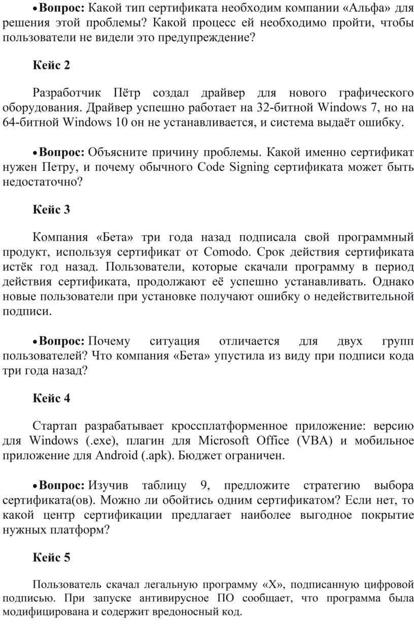 · Вопрос: Проанализируйте таблицу 9. Какой центр сертификации предоставляет наиболее полное покрытие всех этих платформ? Сравните его предложение с другими по широте охвата.