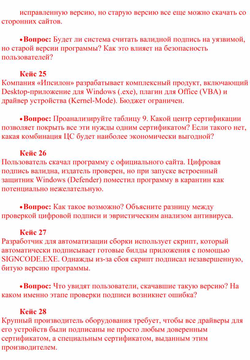 · Вопрос: Будет ли система считать валидной подпись на уязвимой, но старой версии программы? Как это влияет на безопасность пользователей?