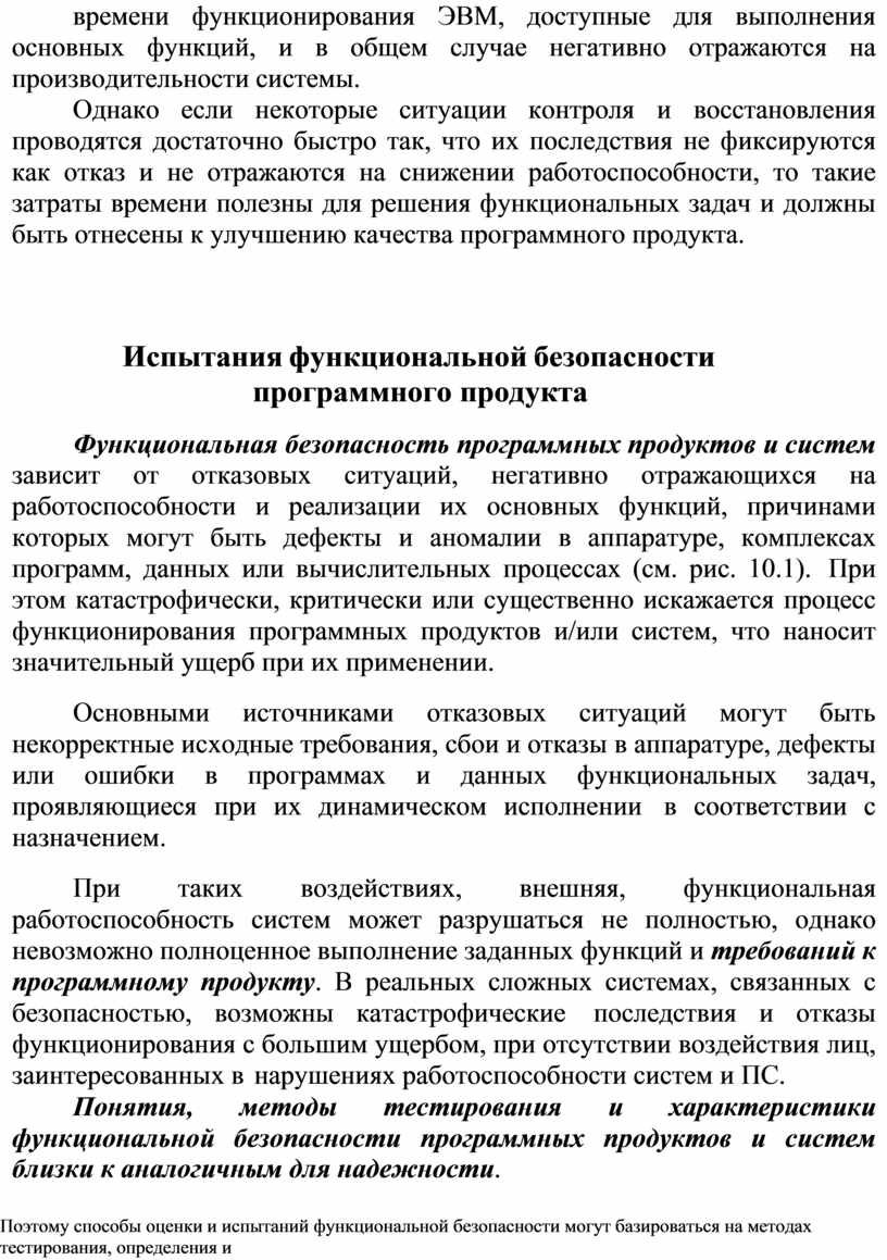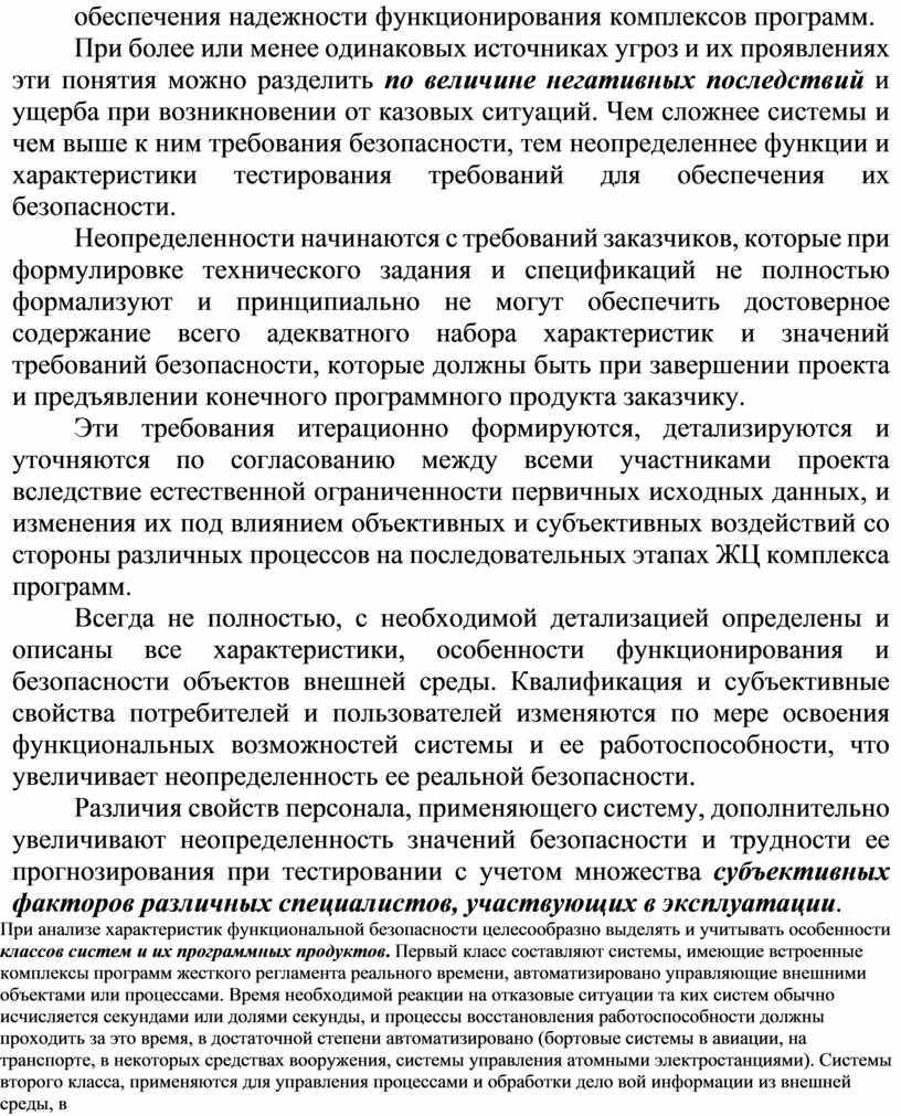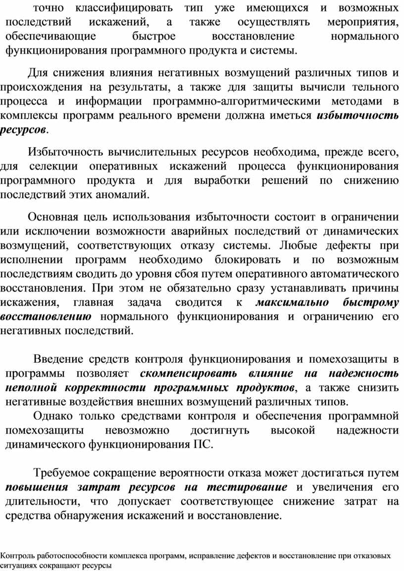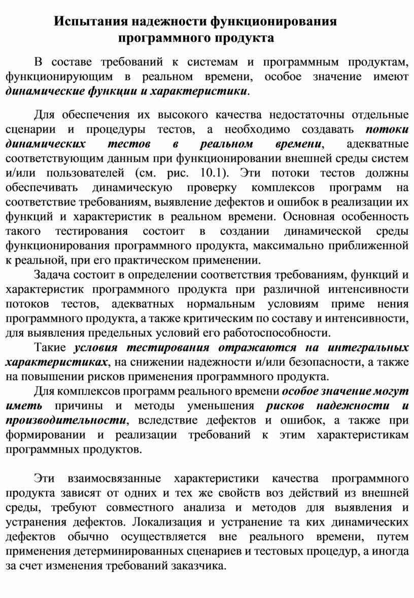 Эти взаимосвязанные характеристики качества программного продукта зависят от одних и тех же свойств воз действий из внешней среды, требуют совместного анализа и методов для выявления и устранения дефектов. Локализация и устранение та ких динамических дефектов обычно осуществляется вне реального времени, путем применения детерминированных сценариев и тестовых процедур, а иногда за счет изменения требований заказчика.