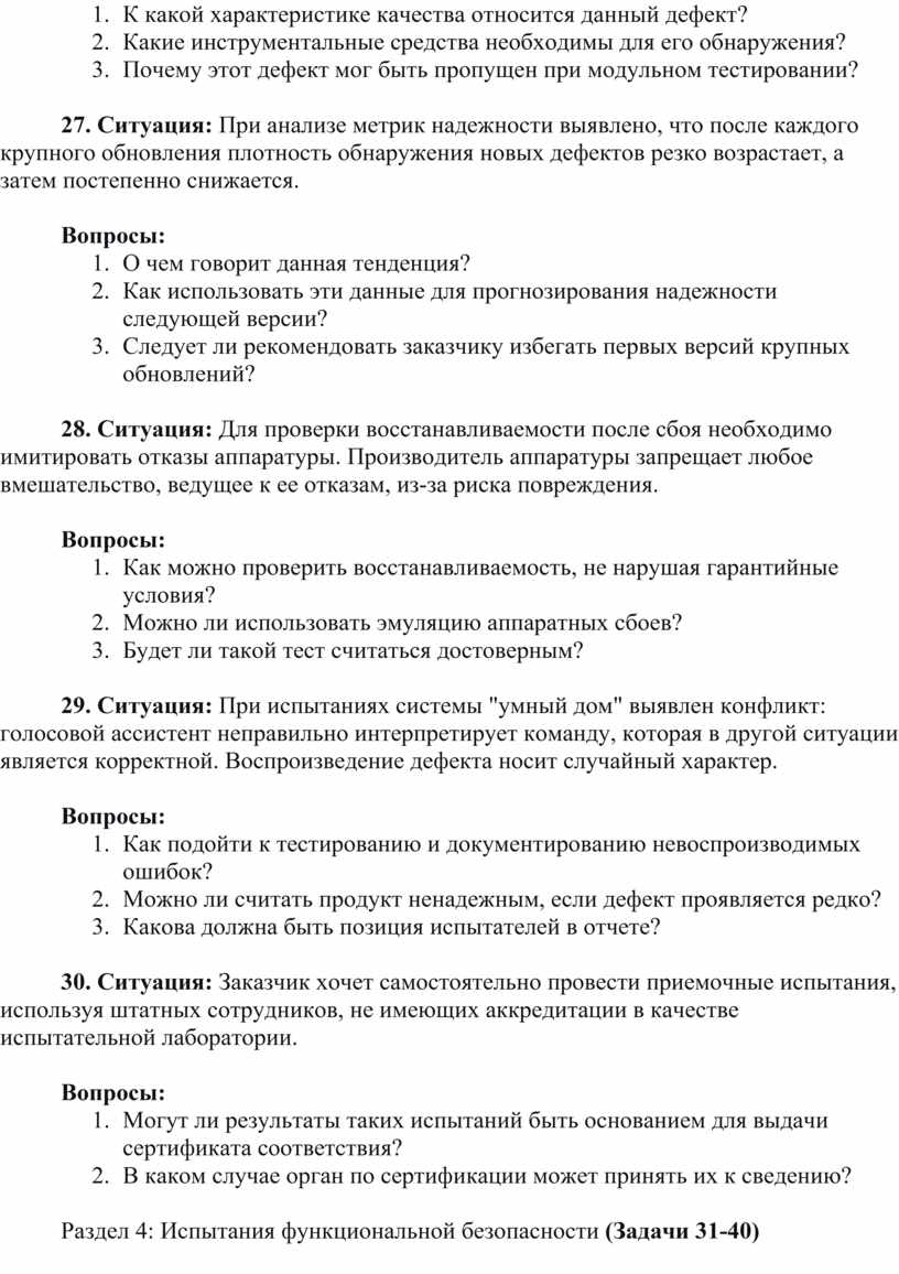 29. Ситуация: При испытаниях системы "умный дом" выявлен конфликт: голосовой ассистент неправильно интерпретирует команду, которая в другой ситуации является корректной. Воспроизведение дефекта носит случайный характер.
