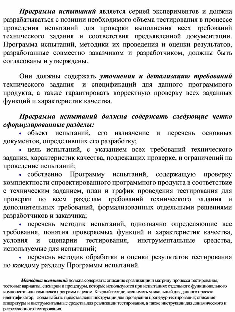 Программа испытаний должна содержать следующие четко сформулированные разделы: