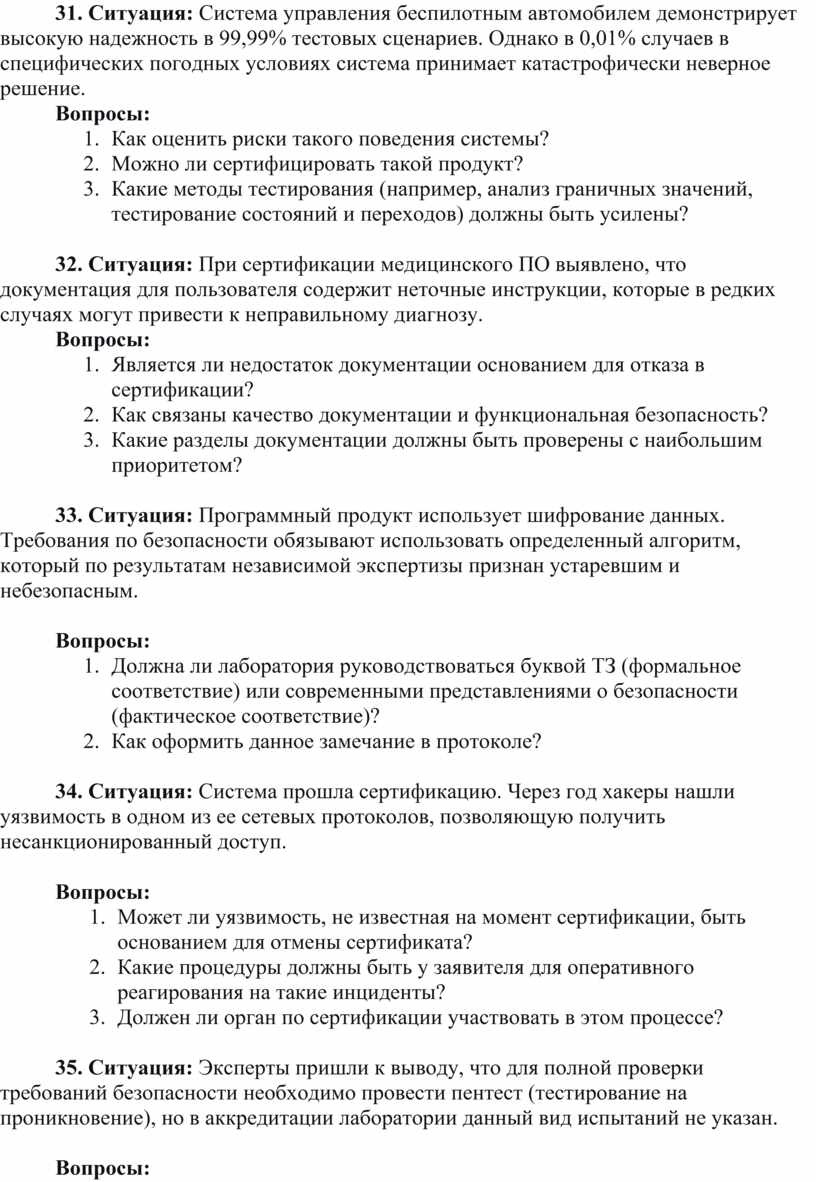 34. Ситуация: Система прошла сертификацию. Через год хакеры нашли уязвимость в одном из ее сетевых протоколов, позволяющую получить несанкционированный доступ.