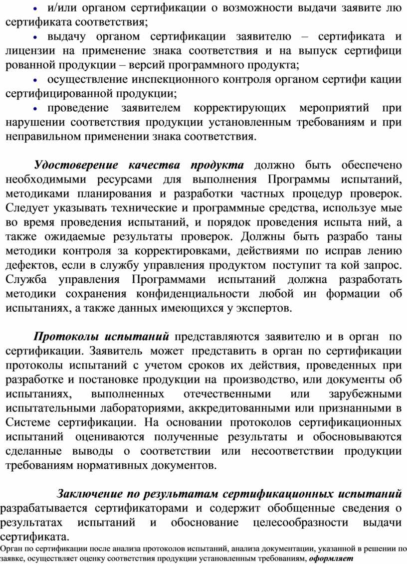 · анализ полученных результатов и принятие решения лабораторией и/или органом сертификации о возможности выдачи заявите лю сертификата соответствия;