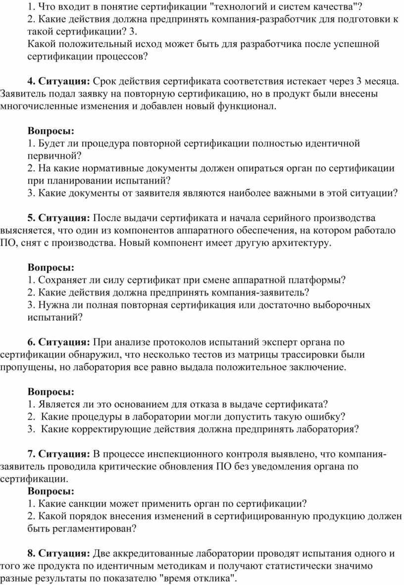 45. Ситуация: В процессе сертификации выяснилось, что ключевой специалист-сертификатор, отвечающий за данный тип продуктов, уволился из лаборатории.