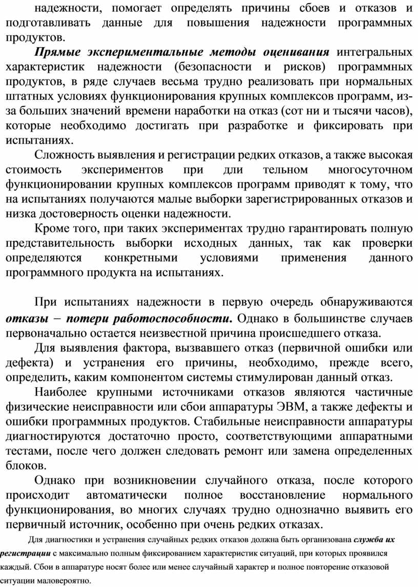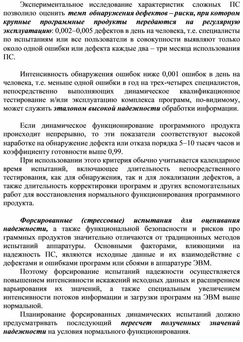 Прямые экспериментальные методы оценивания интегральных характеристик надежности (безопасности и рисков) программных продуктов, в ряде случаев весьма трудно реализовать при нормальных штатных условиях функционирования крупных комплексов программ, из-за больших значений времени наработки на отказ (сот ни и тысячи часов), которые необходимо достигать при разработке и фиксировать при испытаниях.