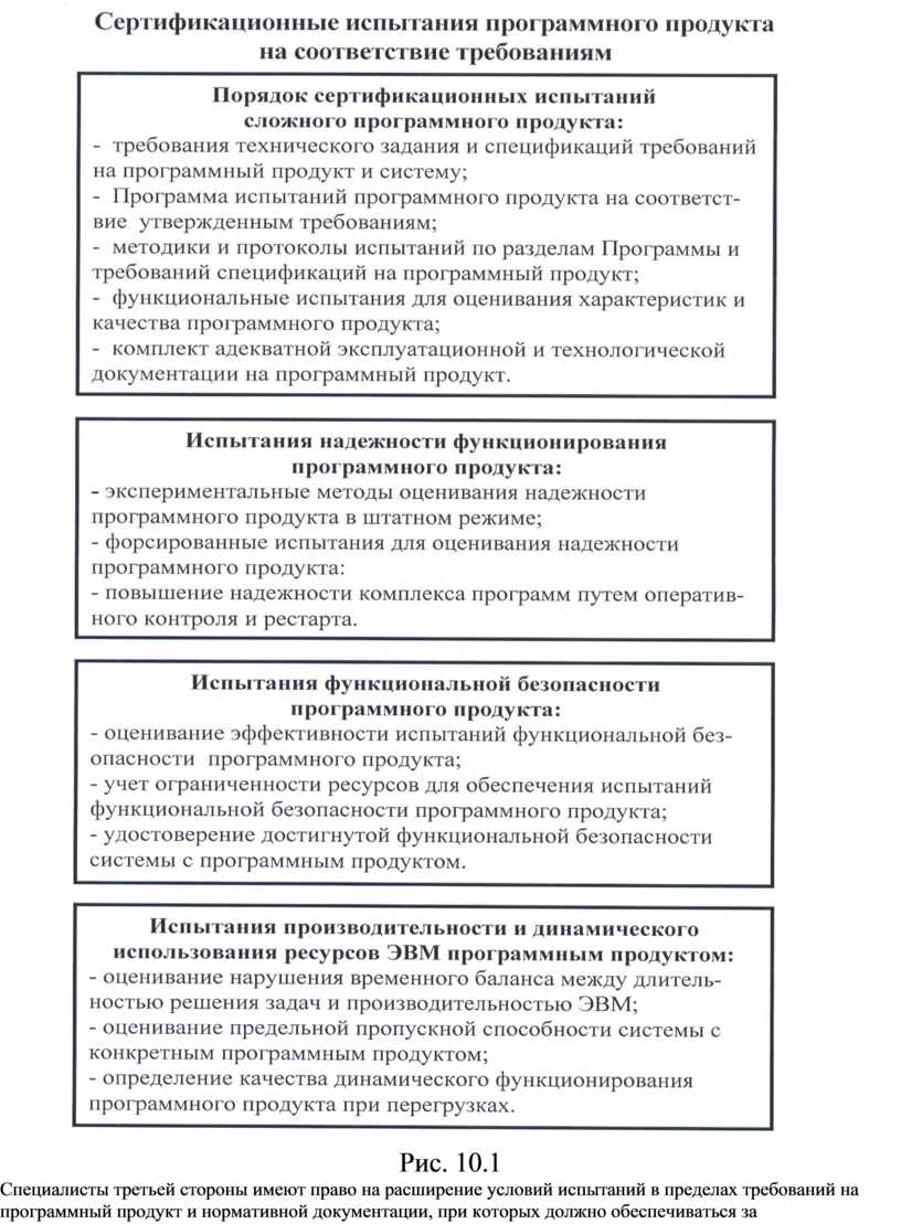 Основной целью сертификации программных продуктов, является контроль и удостоверение качества продукции, гарантирование ее высоких потребительских свойств – рис. 10.1. Задача состоит в повышении эффективности затрат в сфере создания и применения ответственного, конечного программного продукта, а также улучшение объективности оценок его функций, характеристик и конкурентоспособности.