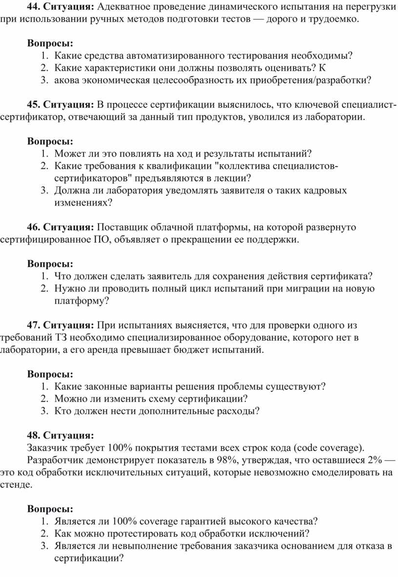 44. Ситуация: Адекватное проведение динамического испытания на перегрузки при использовании ручных методов подготовки тестов — дорого и трудоемко.