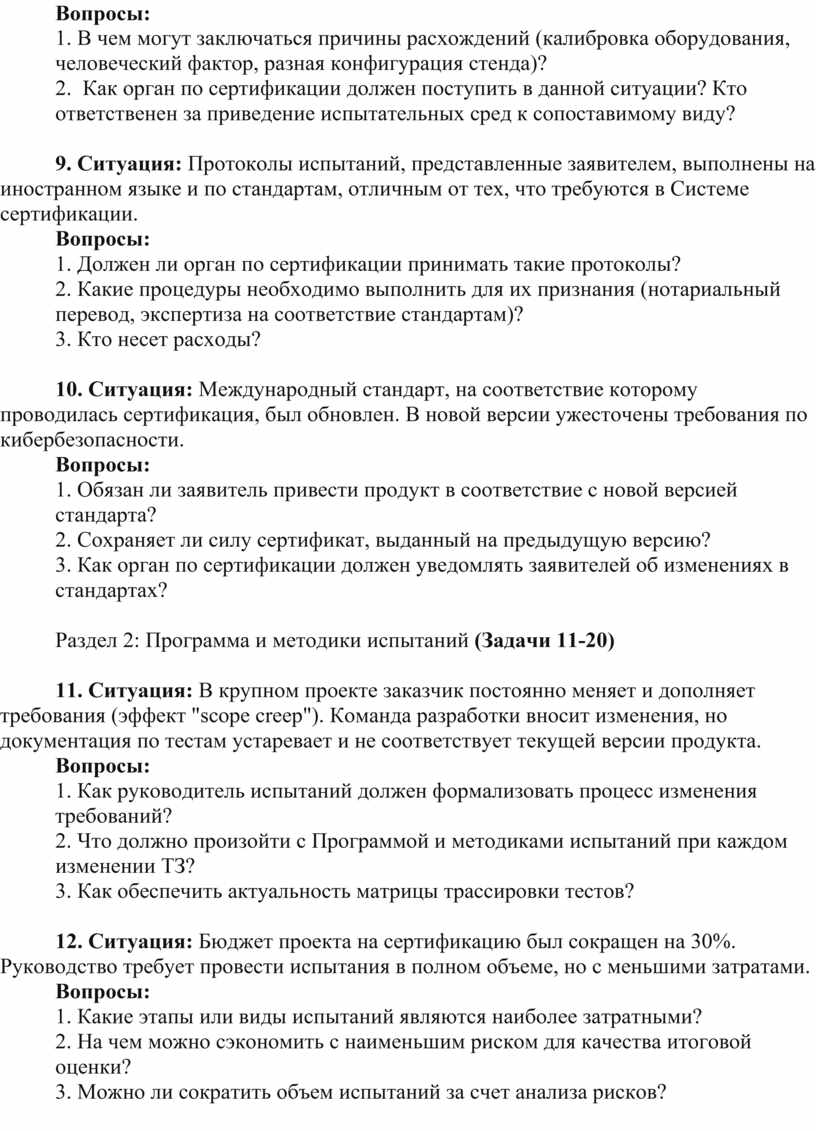 1. В чем может заключаться причина расхождения между испытательной и реальной средой?