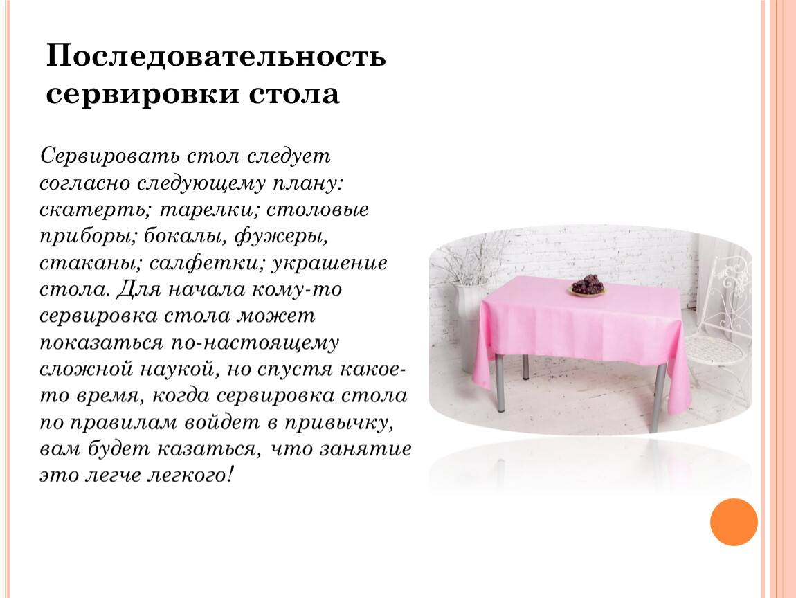 Последовательность сервировки стола