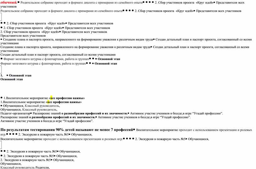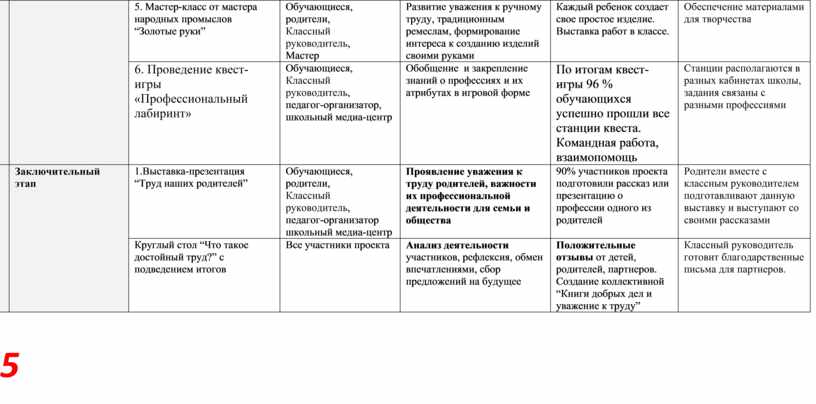Создание плана и паспорта проекта, направленного на формирование уважения к различным видам труда |