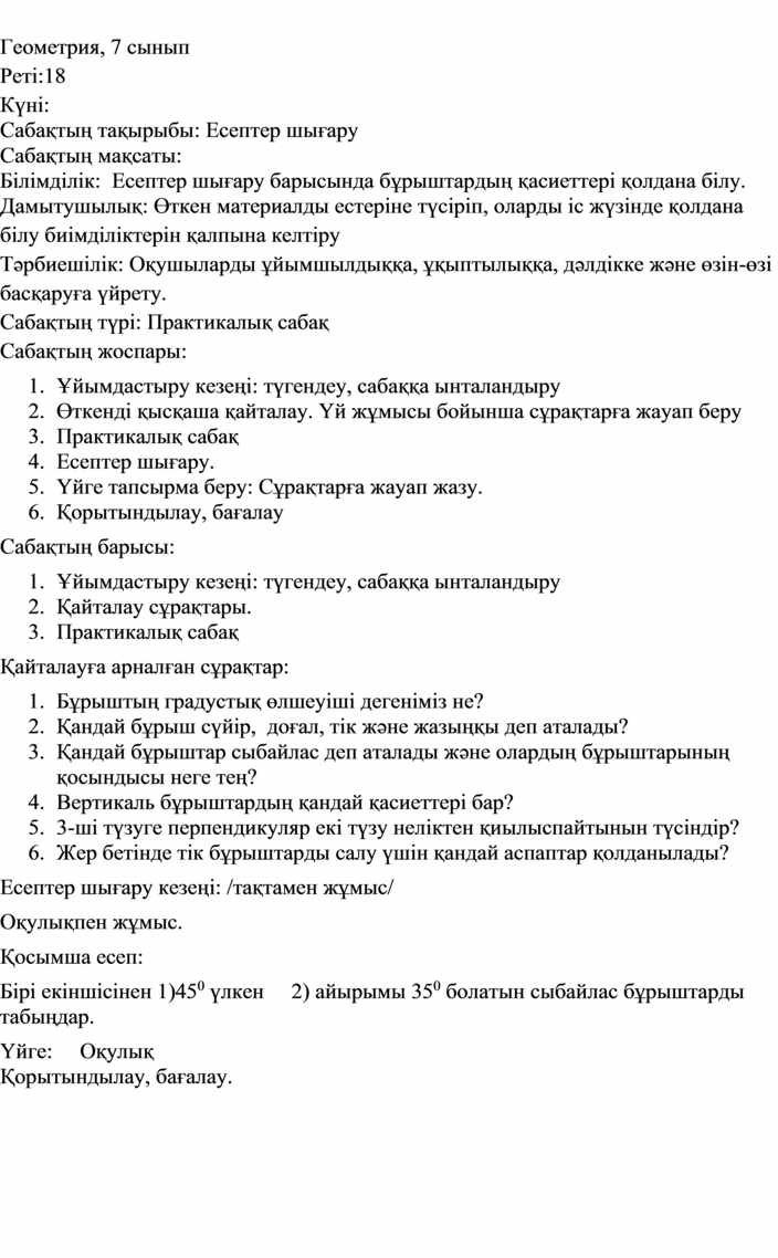Сабақтың тақырыбы: Бұрыш. Бұрыштың шамасы және оның қасиететрі.