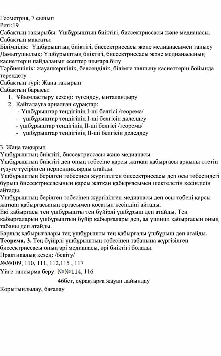 Сабақтың тақырыбы: Үшбұрышқа іштей сызылған шеңбер.