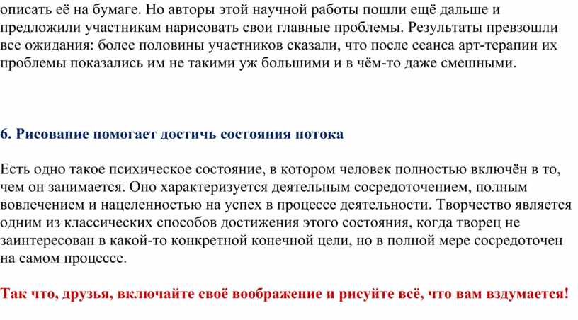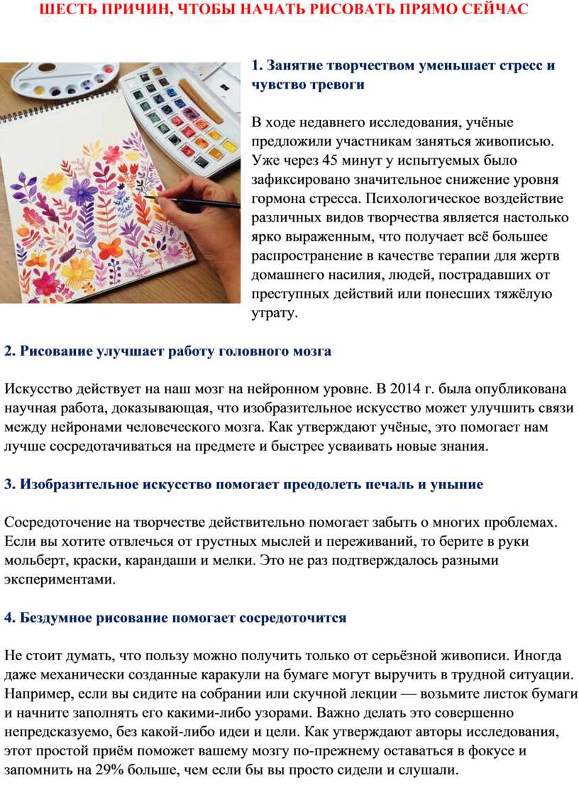 1. Занятие творчеством уменьшает стресс и чувство тревоги