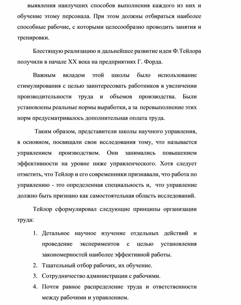 Блестящую реализацию и дальнейшее развитие идеи Ф. Тейлора получили в начале ХХ века на предприятиях Г. Форда.