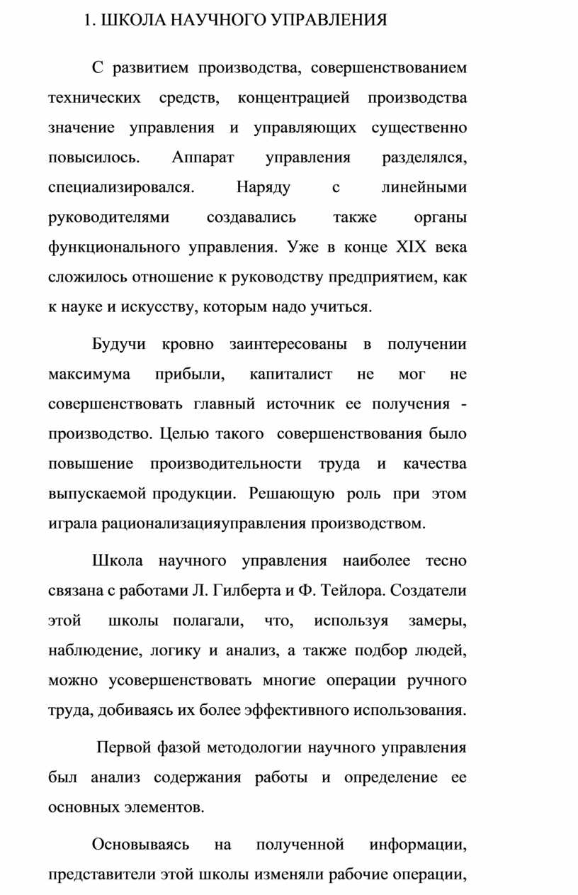 1. ШКОЛА НАУЧНОГО УПРАВЛЕНИЯ