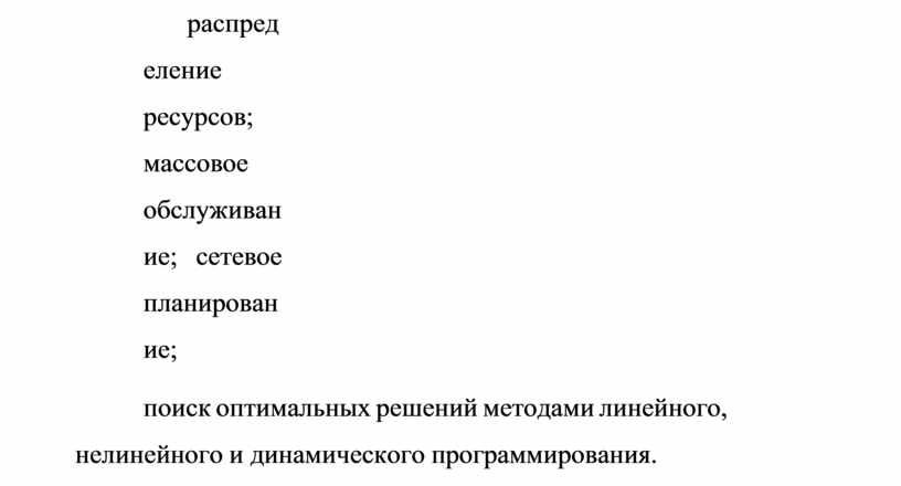 распределение ресурсов; массовое обслуживание; сетевое планирование;