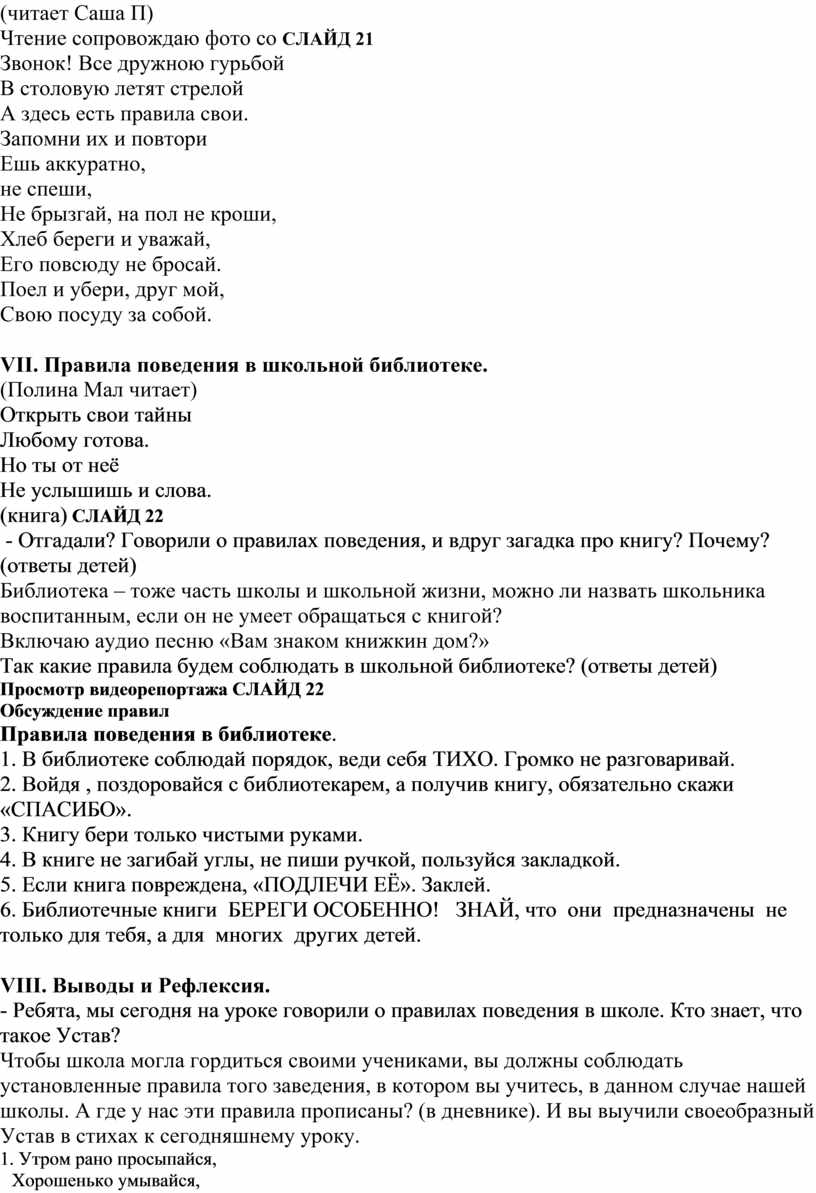 Чтобы школа могла гордиться своими учениками, вы должны соблюдать установленные правила того заведения, в котором вы учитесь, в данном случае нашей школы. А где у нас эти правила прописаны? (в дневнике). И вы выучили своеобразный Устав в стихах к сегодняшнему уроку.