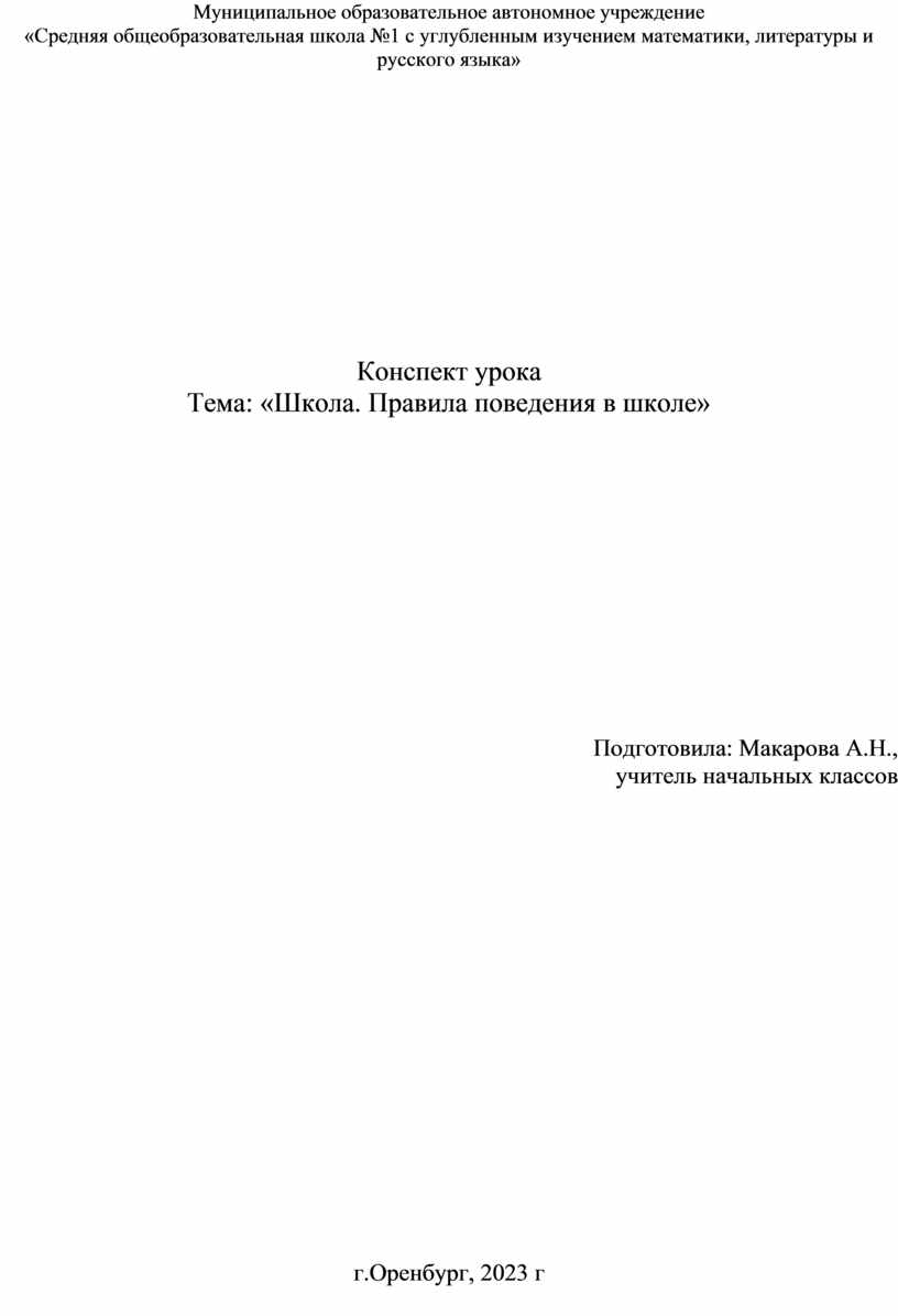 «Средняя общеобразовательная школа №1 с углубленным изучением математики, литературы и русского языка»