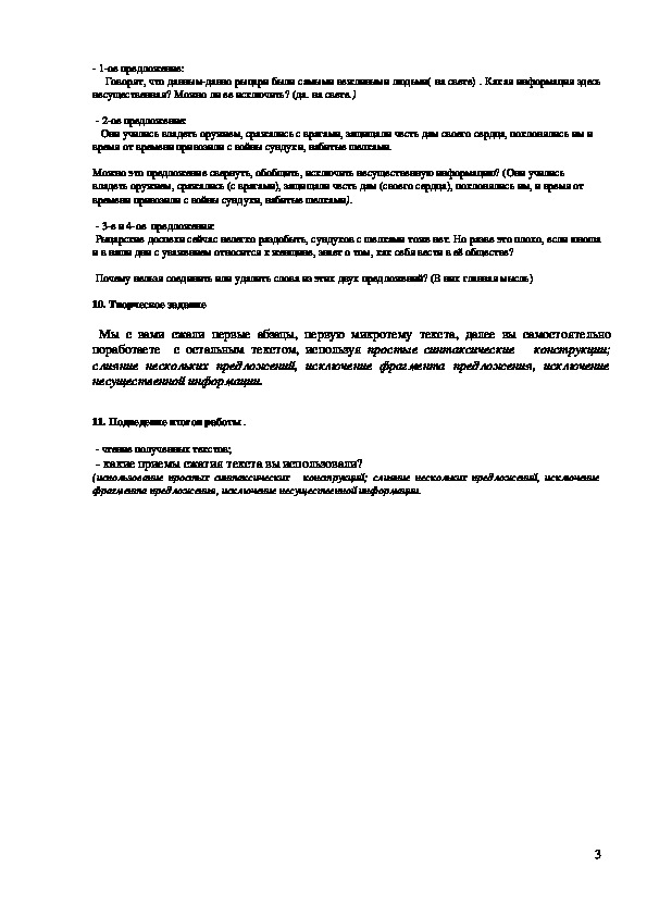 7. Давайте вспомним, как можно сжать текст, какие при этом следует применять приемы.