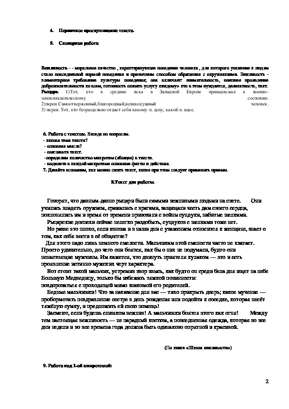 Тема: Сжатое изложение по книге « Школа вежливости»