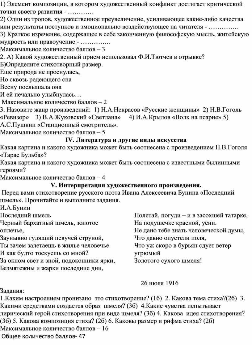 1.Каким настроением пронизано это стихотворение? (1б) 2. Какова тема стиха?(2б) 3. Какими средствами создается образ шмеля? (3б) 4.Какие чувства испытывает лирический герой стихотворения при виде шмеля? (3б) 4. Какова идея стихотворения? (3б) 5. Какова композиция стиха? (2б) 6. Каковы размер и рифма стиха? (2б)