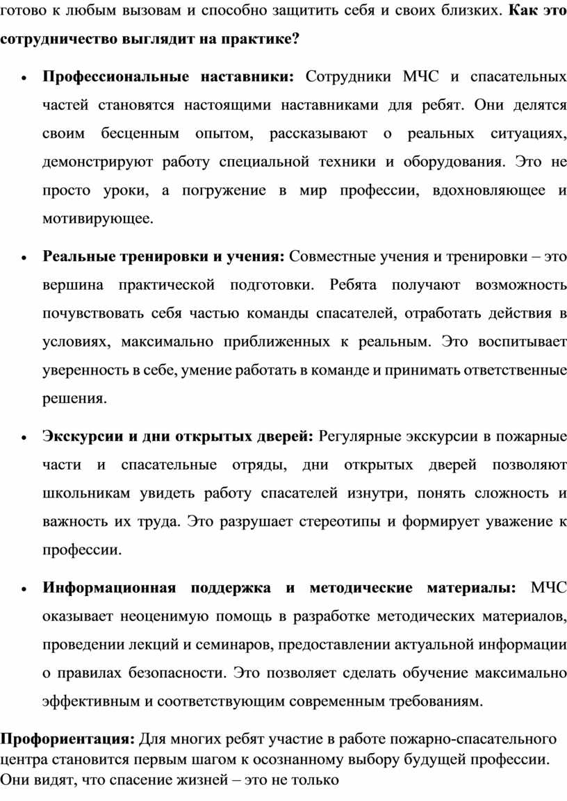 Школьный пожарно-спасательный центр – это не просто способ решения задач государственной молодежной политики. Это инвестиция в будущее, это вклад в безопасность нашей страны, это шанс воспитать поколение, которое будет готово к любым вызовам и способно защитить себя и своих близких. Как это сотрудничество выглядит на практике?