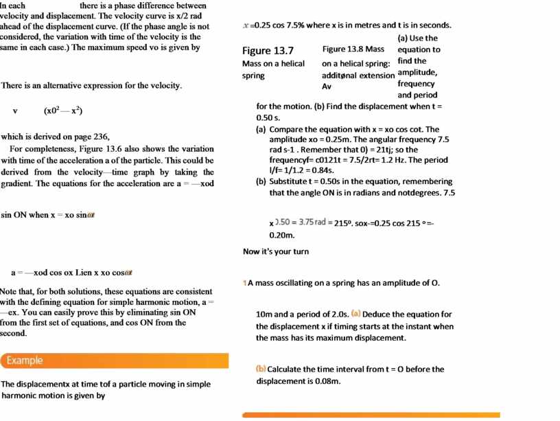 In order to find the displacement—time relation for a particle moving in a simple harmonic motion, we need to solve the equation a = —Ox. To derive the solution requires mathematics which is beyond the requirements of A/AS Physics. However, you need to know the form of the solution. This is