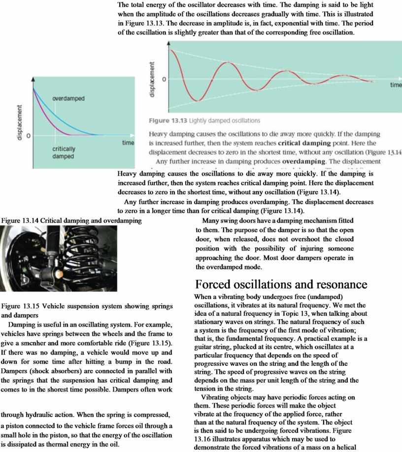 13.3 (a) describe practical examples of damped oscillations with particular reference to the effects of the degree of damping and the importance of critical damping