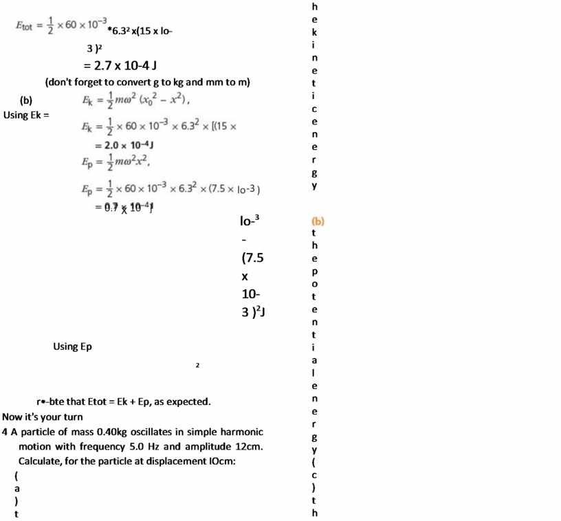 b Calculate the displacement at the energy of the particle has equal amounts of kinetic and of potential energy.