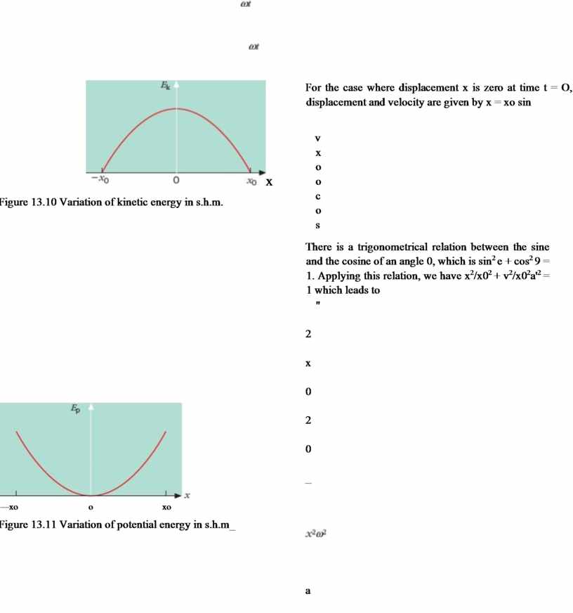 where xo is the amplitude of the oscillation. The solution x = xo sin ax is used when, at time t = O, the particle is at its equilibrium position where x = O. Conversely, if at time t = O the particle is at its maximum displacement, x = xo, the solution is x xo cos ox. The variation with time t of the displacement x for the two solutions is shown in Figure 13-5.