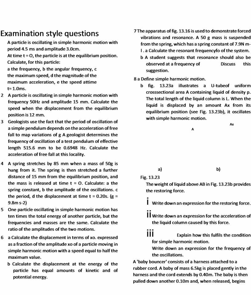 b fig. 13.23a illustrates a U-tubeof uniform crosssectional area A containing liquid of density p. The total length of the liquid column is L. When the liquid is displaced by an amount Ax from its equilibrium position (see Fig. 13.23b), it oscillates with simple harmonic motion.