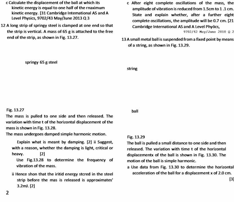 c Calculate the displacement of the ball at which its kinetic energy is equal to one half of the rnaximum kinetic energy. [31 Cambridge Intemational AS and A Level Physics, 9702/43 May/June 2013 Q 3