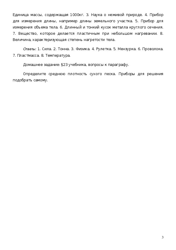 Ответы: 1. Сила. 2. Тонна. 3. Физика. 4. Рулетка. 5. Мензурка. 6. Проволока.