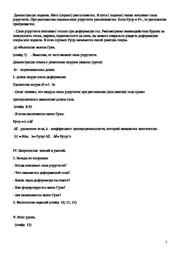 уметь: решать задачи на применение закона Гука, изобразить силу на рисунке.