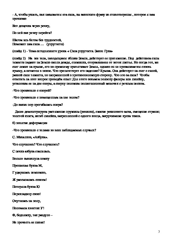 Далее демонстрируем растяжение пружины (резинки), сжатие резинового мяча, смещение страниц