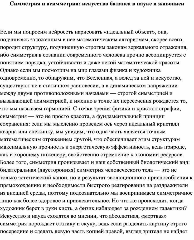 Симметрия и асимметрия: искусство баланса в науке и живописи