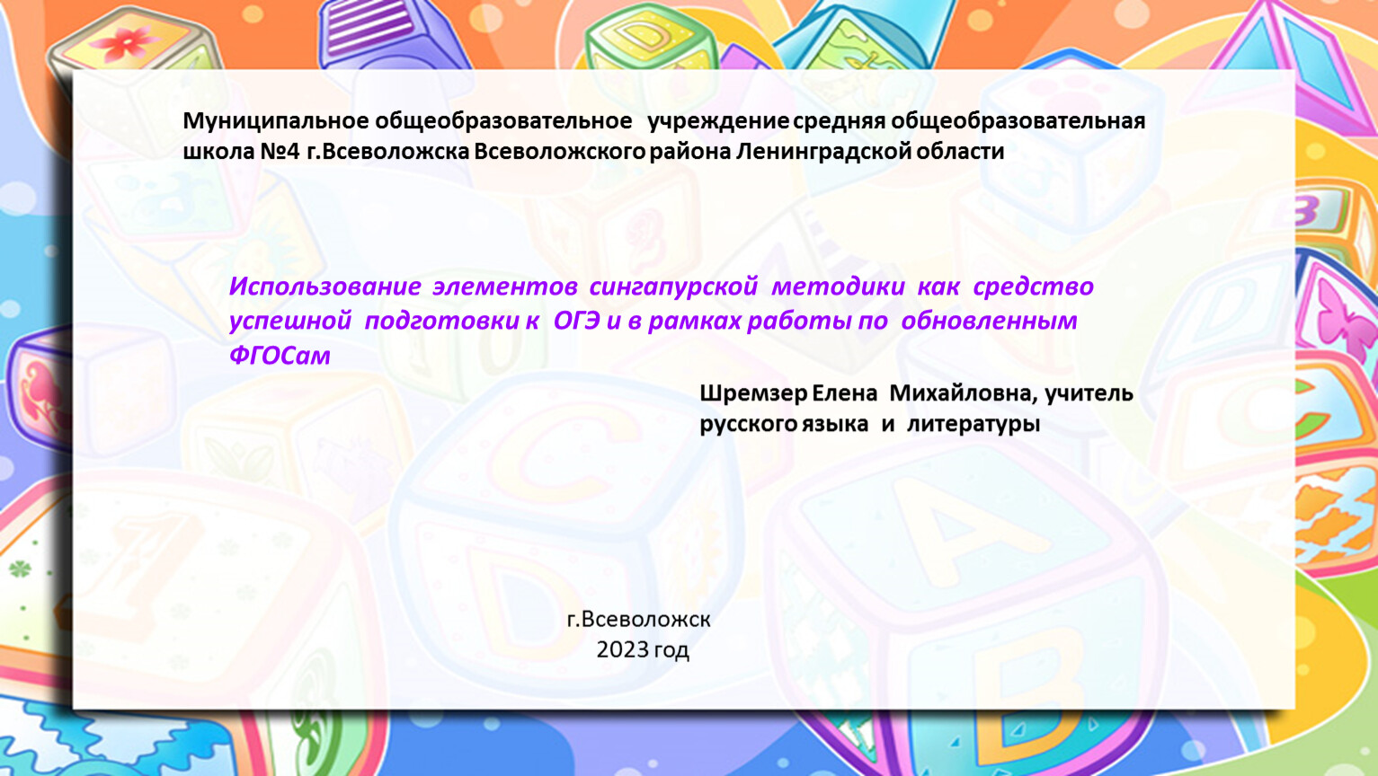 Использование элементов сингапурской методики как средство успешной подготовки к ОГЭ и в рамках работы по обновленным ФГОСам