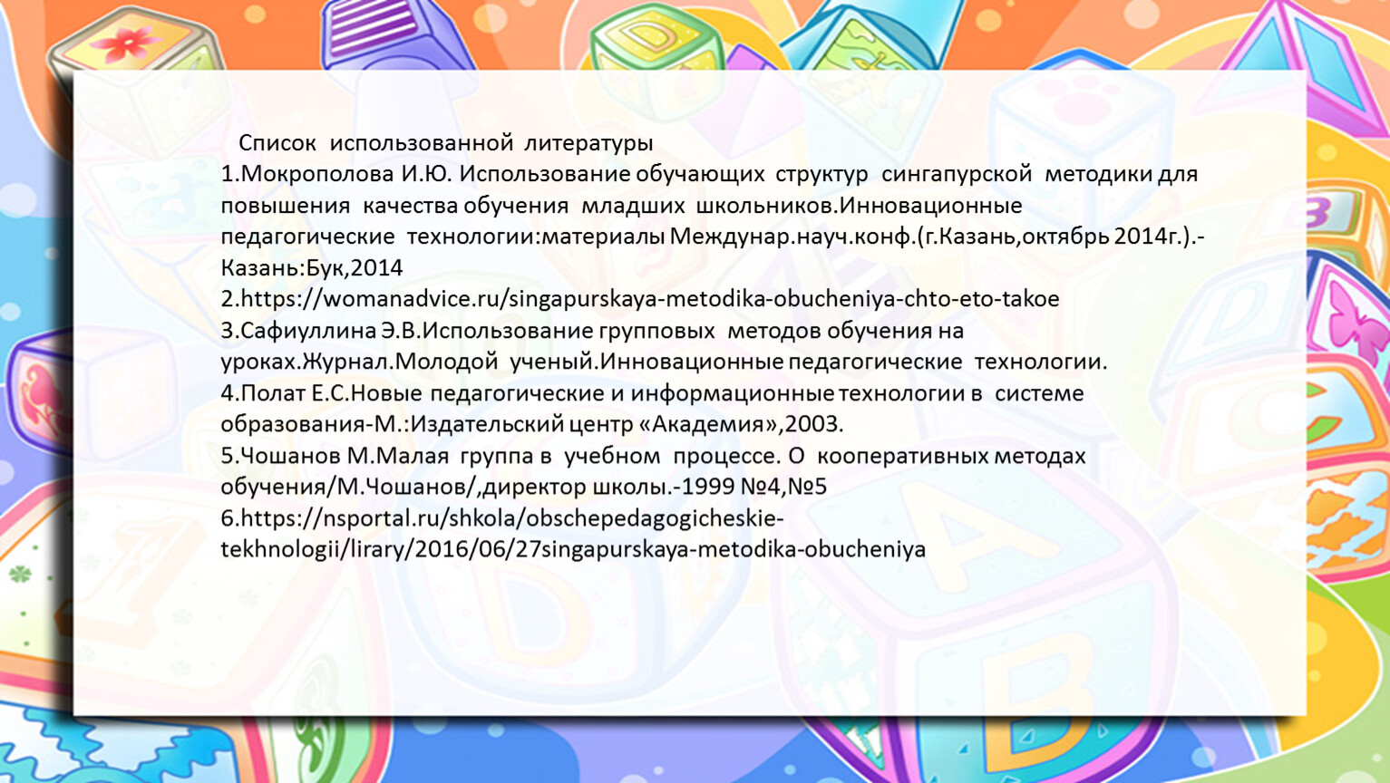 6.https://nsportal.ru/shkola/obschepedagogicheskie-tekhnologii/lirary/2016/06/27singapurskaya-metodika-obucheniya