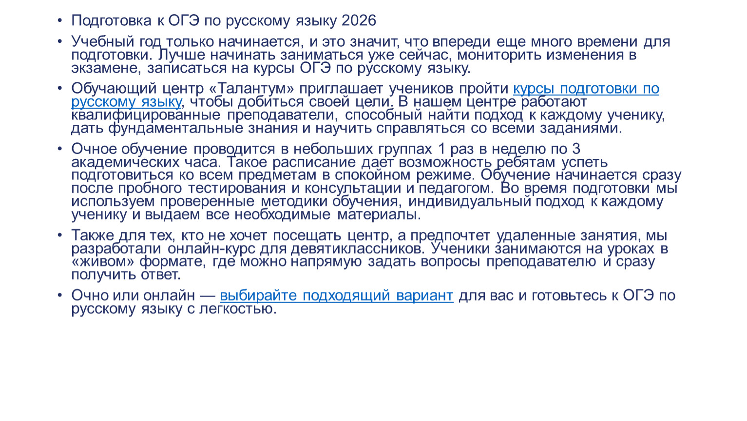 Очно или онлайн — выбирайте подходящий вариант для вас и готовьтесь к ОГЭ по русскому языку с легкостью.