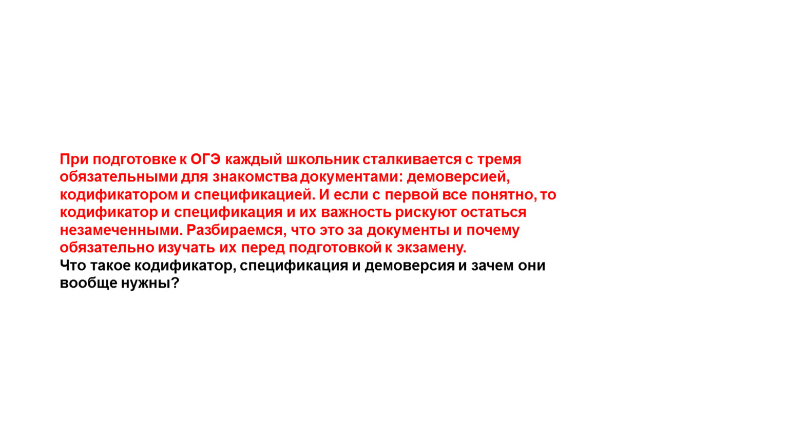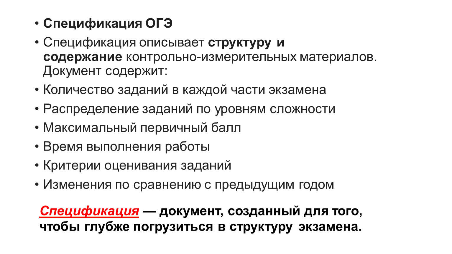 При подготовке к ОГЭ каждый школьник сталкивается с тремя обязательными для знакомства документами: демоверсией, кодификатором и спецификацией. И если с первой все понятно, то кодификатор и спецификация и их важность рискуют остаться незамеченными. Разбираемся, что это за документы и почему обязательно изучать их перед подготовкой к экзамену.