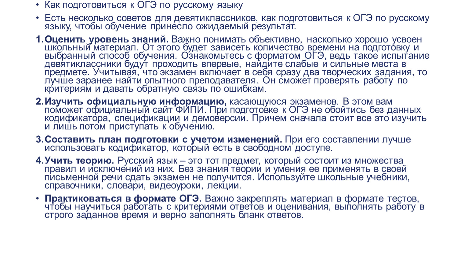 Есть несколько советов для девятиклассников, как подготовиться к ОГЭ по русскому языку, чтобы обучение принесло ожидаемый результат.