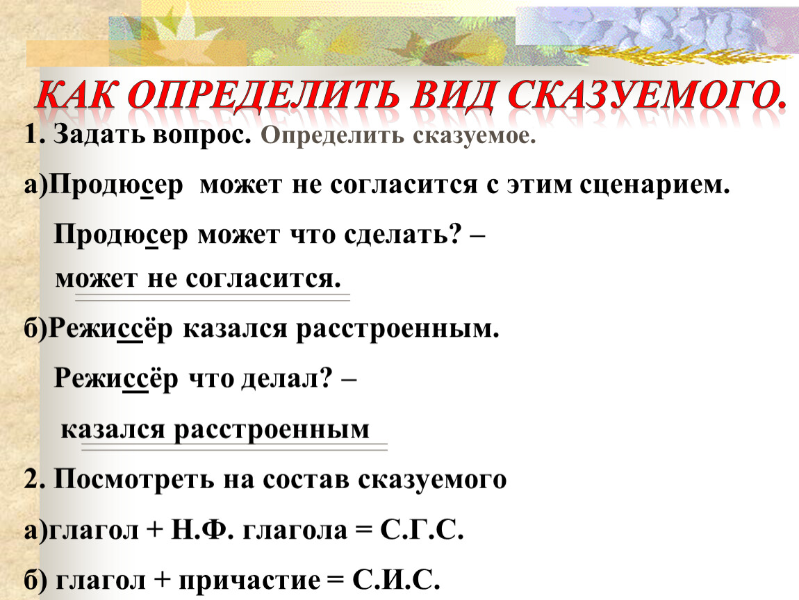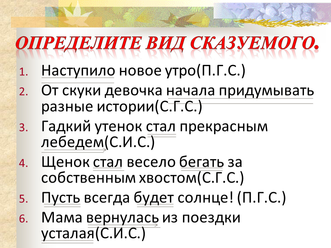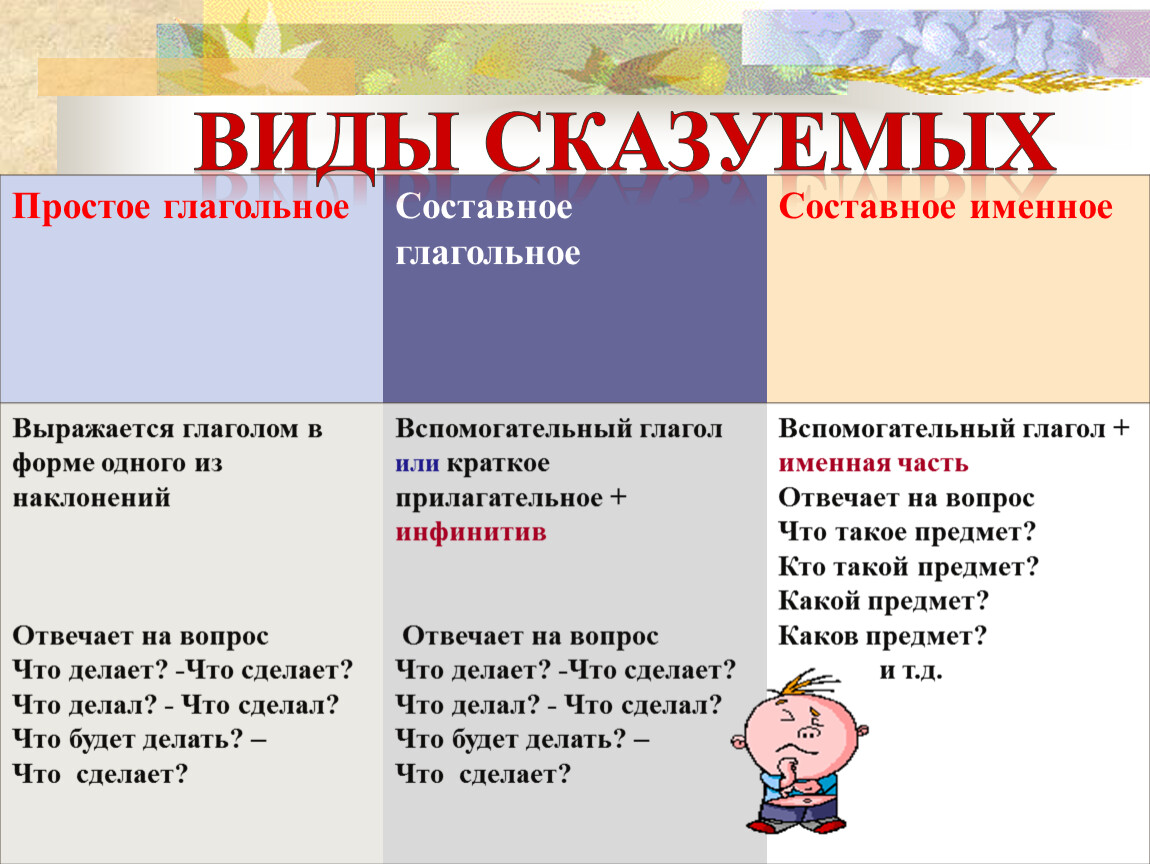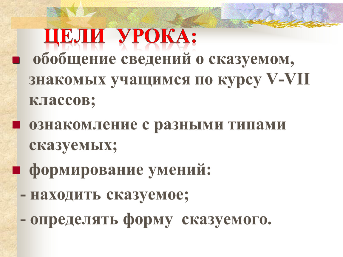 обобщение сведений о сказуемом, знакомых учащимся по курсу V-VII классов;