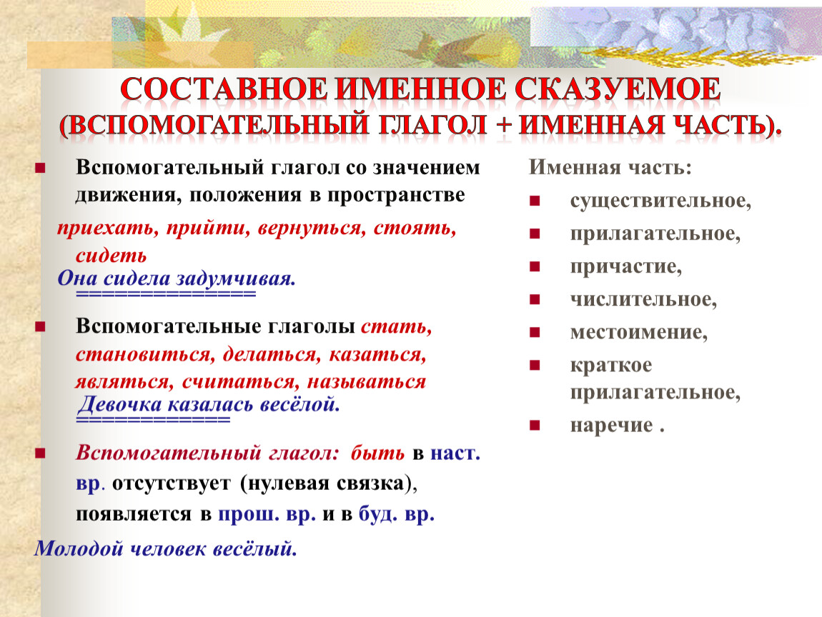 Вспомогательные глаголы стать, становиться, делаться, казаться, являться, считаться, называться