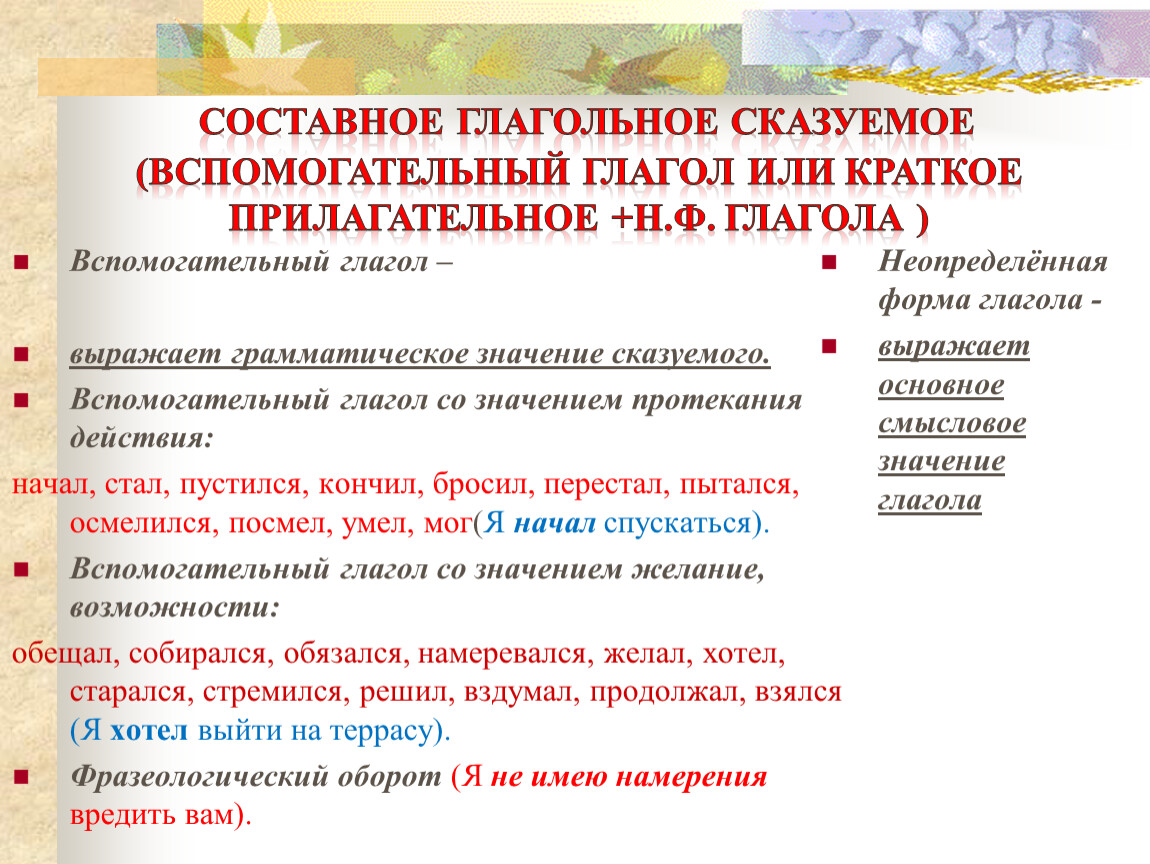 (вспомогательный глагол или краткое прилагательное +Н.ф. глагола )